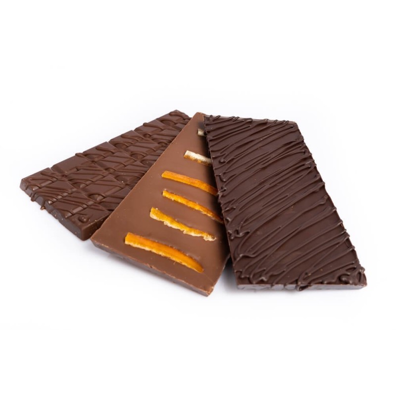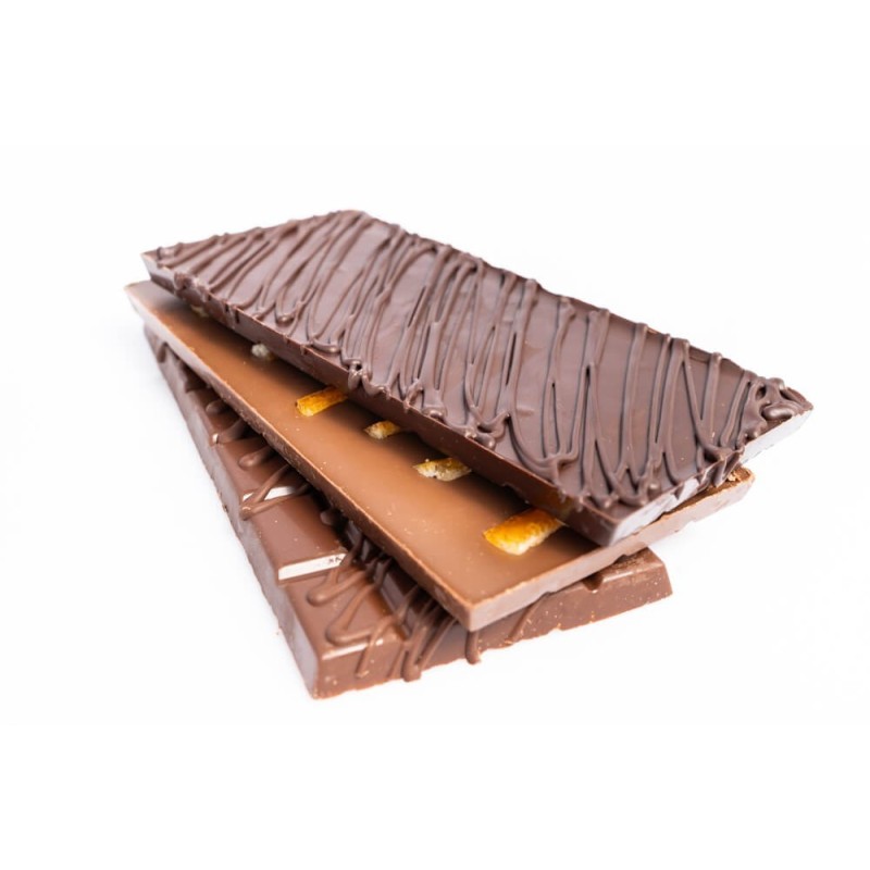 Tablette de chocolat maison noir ou au lait nature.