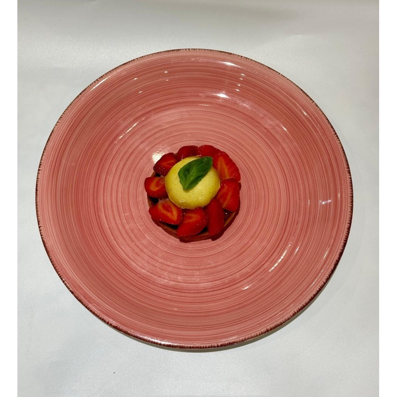 pâte sucrée, Croustillant citron Vert, confit fraise Basilic, Crème légère Huile d'olive Basilic, fraises Fraiches