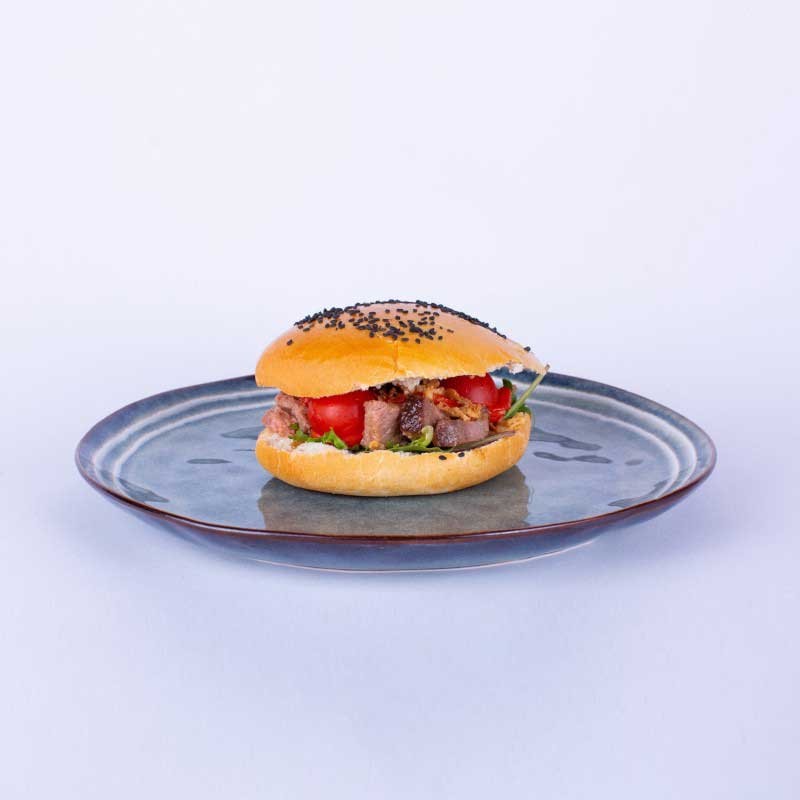 Pain Bun’s, Sauce Poke, Poivron Rouge, Cacahuete, Rosbif, Tomate Cerise